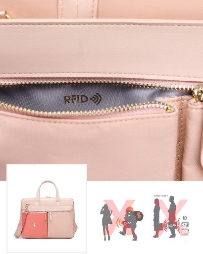 Torba wyposażona w wygodne rączki oraz pasek na ramię. Posiada wiele kieszeni zapinanych na zamek błyskawiczny w tym jedna z funkcją RFID (Radio-Frequency Identification).