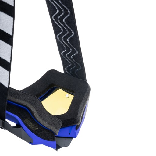 - szeroki (45 mm) pasek z silikonowym nadrukiem od wewnątrz zapobiegającym zsuwaniu się gogli z kasku