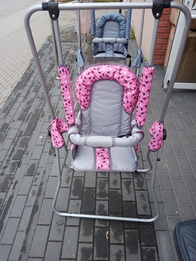 Huśtawka wolno stojąca idealna do domu jak i ogrodu. Bezpieczna metalowa konstrukcja, bardzo wytrzymała. Może też pełnić funkcję kołyski lub krzesełka do karmienia