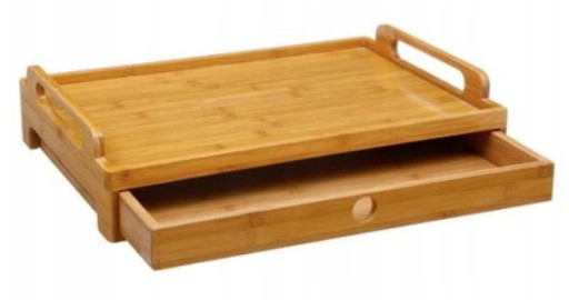 Bambusowa taca z szufladką łączy w sobie trzy funkcje: