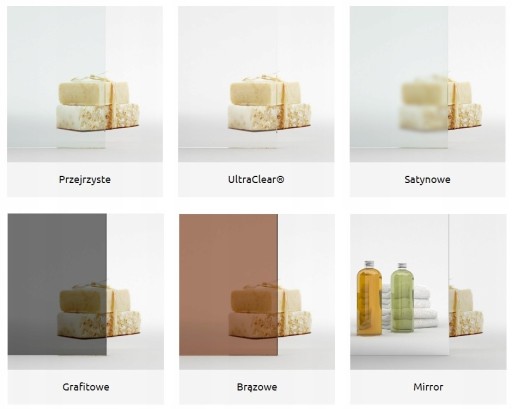 Istnieje możliwość zakupienia drzwi w szkle innym niż przejrzyste - poniżej dostępne warianty: