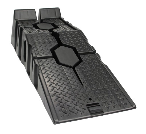 Rampy są wyposażone w wysoki próg zabezpieczający auto przed stoczeniem się do przodu. Dodatkowo całość rampy pokryta jest specjalną strukturą zwiększając przyczepność