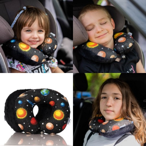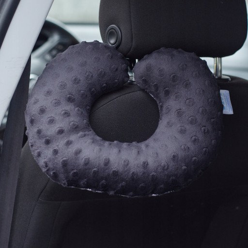 Dzięki zapięciu na nap poduszka nie wędruje po samochodzie tylko może zostać wpięta w zagłówek lub przypięta do pasa
