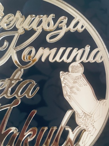 W wiadomości dla sprzedającego poodczas składania zamówienia proszę podać IMIĘ w odmienionej formie , np (Pierwsza Komunia Święta Jakuba )