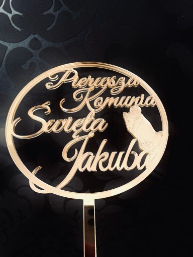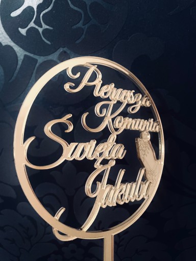 Topper wykonany jest z Plexi w kolorze ZLOTE LUSTRO o grubości ok. 3mm