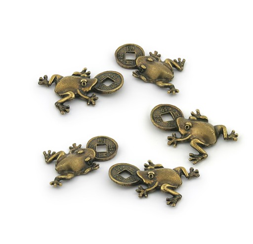 W chińskiej tradycji uważa się, że żaba z monetą przyciąga energię obfitości i bogactwo. Jest jednym z najczęściej spotykanych i używanych symboli Feng Shui.