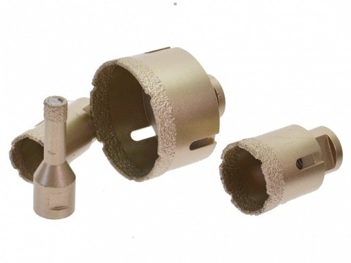 Wiertło diamentowe posiada nasyp diamentowy lutowany, a więc o wiele bardziej wytrzymały niż w zwyczajnych otwornicach.