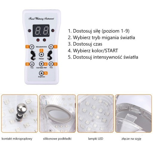 Lampa LED Beauty Mask posiada 7 podstawowych funkcji: