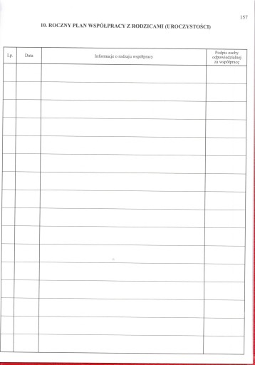 10. Roczny plan współpracy z rodzicami (uroczystości)