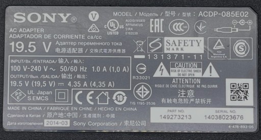 Sony ACDP-085E02 19,5 В 4,35A 85 Вт 6,0x4,3 Питания