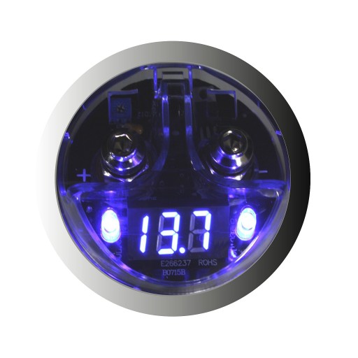 - Woltomierz z 3-cyfrowym niebieskim wyświetlaczem LED