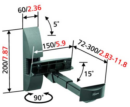 Ten niewielki uchwyt przeznaczony jest do montażu na ścianie podstawkowych kolumn głośnikowych o wadze aż do 20 kg/sztuka. Dzięki zaciskowej konstrukcji głośniki można zamocować kolumny bez użycia śrub. Ustawienie nagłośnienia w optymalnej pozycji odsłuchowej zapewnia opcja pochylenia i obrotu uchwytu. VLB 200 dostarczany jest w zestawach obejmujących dwa uchwyty.