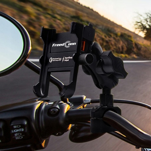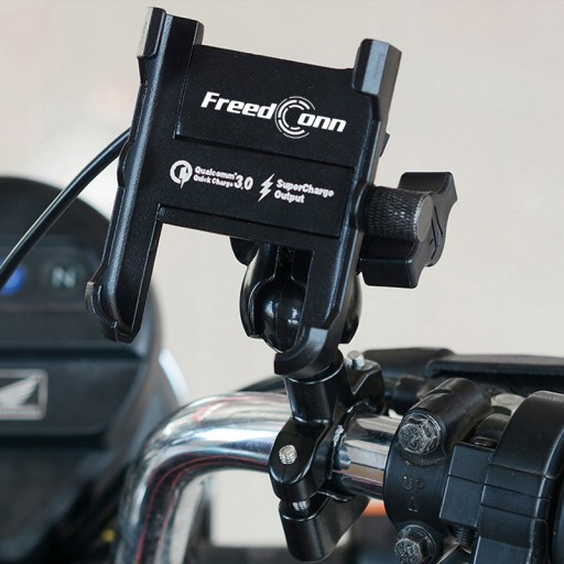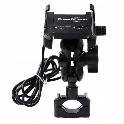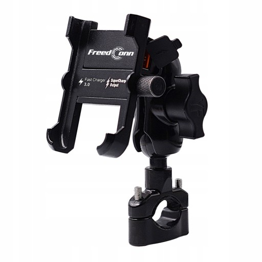 Bardzo wytrzymały metalowy uchwyt na telefon znanej i cenionej marki FreedConn. Idealny na motocykl, skuter, quad ! Wyposażony w ładowarkę USB 5V 2.0A.