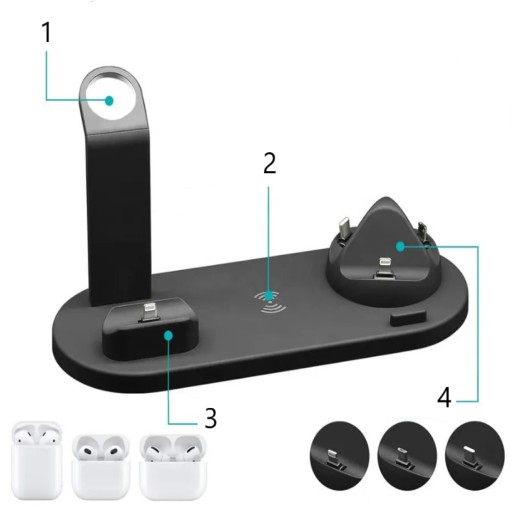 ŁADOWARKA STOJAK 3W1 NA TELEFON ZEGAREK SŁUCHAWKI