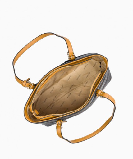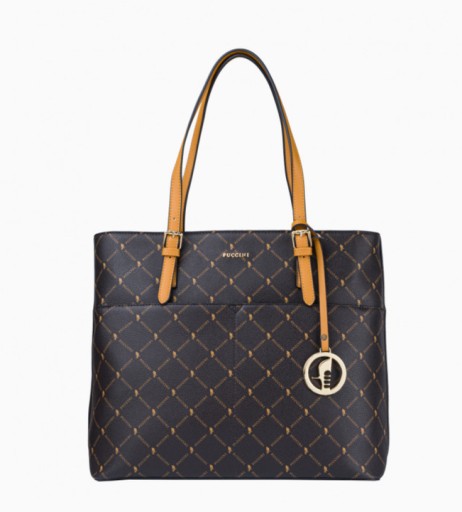 Funkcjonalna shopperka, stworzona z myślą o kobietach, które z racji potrzeby noszenia przy sobie wielu akcesoriów, szukają pojemnego modelu. Komora główna, mieszcząca A4, zapinana jest na zamek. Wewnątrz znajdziemy trzy kieszonki (dwie otwarte oraz jedną na zamek), pozwalające na idealne wygospodarowanie miejsca na najpotrzebniejsze rzeczy. Podszewka została wykonana z logowanego, poliestrowego materiału. Od frontu umieszczono dwie otwarte kieszenie, natomiast z tyłu kieszeń zapinaną na suwak. Regulowane uchwyty pozwalają na noszenie torebki w dłoni lub na ramieniu. Dodatkowo torebka posiada zawieszkę z logo Puccini. Od spodu została zabezpieczona czterema stopkami ochronnymi.