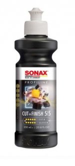 SONAX ProfiLine Cut & Finish - to posta polerska za pomocą której mocno odświeżymy lakier jak i nadamy mu ładne wykończenie. Można ją stosować z średnimi gąbkami polerskimi, jak również z futrem polerskim. Jest pastą tłustą, dzięki czemu możemy nią długo pracować. W przeciwieństwie do innych past mocno tnących, Cut & Finish pozostawia bardzo dobre wykończenie, nawet przy pracy z bardzo agresywnym futrem polerskim.