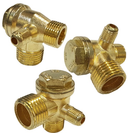 Zabezpiecza przed cofaniem się sprężonego powietrza z butli, które wcześniej zostało wtłoczone przez sprężarkę. Posiada trzy wyjścia o