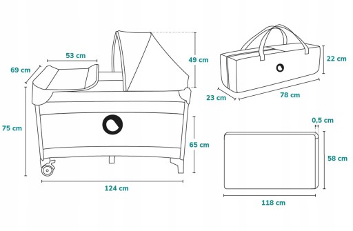Dopasowana do produktu wytrzymała torba umożliwia swobodny transport kojca po złożeniu. Torba sprawdza się w każdych warunkach.