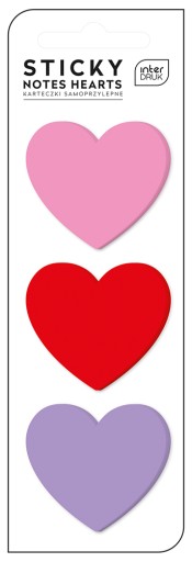 Zestaw 75 samoprzylepnych karteczek w kształcie serduszek.