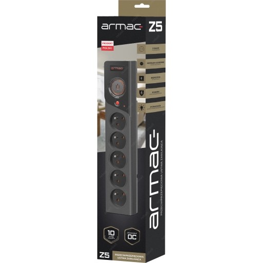 Nowoczesna i wysokiej jakości listwa przeciwprzepięciowa ARMAC Z5 to skuteczne zabezpieczenie dla urządzeń takich jak komputery stacjonarne i mobilne, urządzenia peryferyjne, sprzęt RTV/AGD oraz urządzenia multimedialne. Wysoka jakość potwierdza wieloletnie doświadczenie polskiego producenta ARMAC. Co więcej estetyczny wygląd wraz z wytrzymała konstrukcja listwy, która została wykonana z samogasnącego tworzywa sprawiają, że jest to najbardziej trafny wybór.