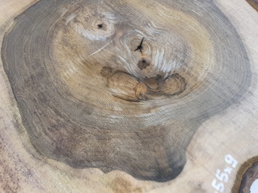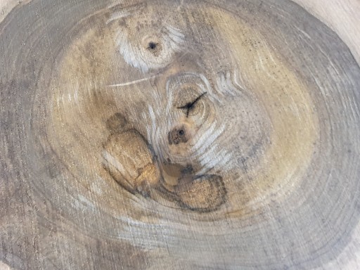 Zdjęcia robimy od razu po przecięciu, żeby jak najlepiej pokazać w jaki sposób można wyprowadzić plaster i podkreślić jego strukturę. W procesie suszenia naturalną rzeczą są pęknięcia materiału powstałe w skutek oddawania wilgoci oraz powierzchowna zmiana barwy. Zdjęcie obok pokazuje aktualny stan plastra.