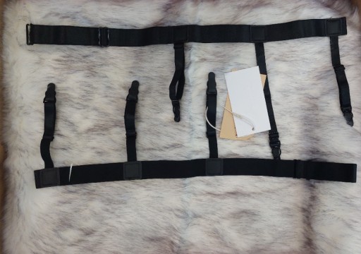 Szelki zakłada się na uda. Na każdej nodze znajdują się trzy paski zakończone uchwytami do koszuli, sposób mocowania "klips" . Mocowanie produktu jest bardzo proste i można je wykonać samodzielnie.