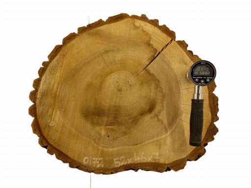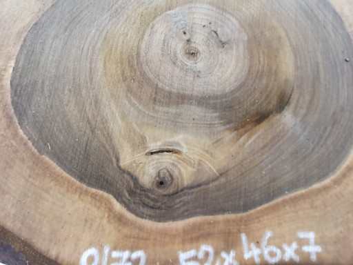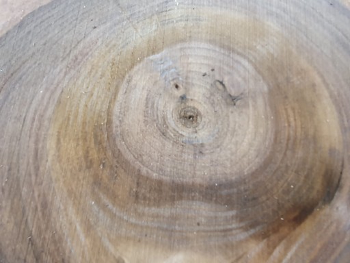 Zdjęcia robimy od razu po przecięciu, żeby jak najlepiej pokazać w jaki sposób można wyprowadzić plaster i podkreślić jego strukturę. W procesie suszenia naturalną rzeczą są pęknięcia materiału powstałe w skutek oddawania wilgoci oraz powierzchowna zmiana barwy. Zdjęcie obok pokazuje aktualny stan plastra.