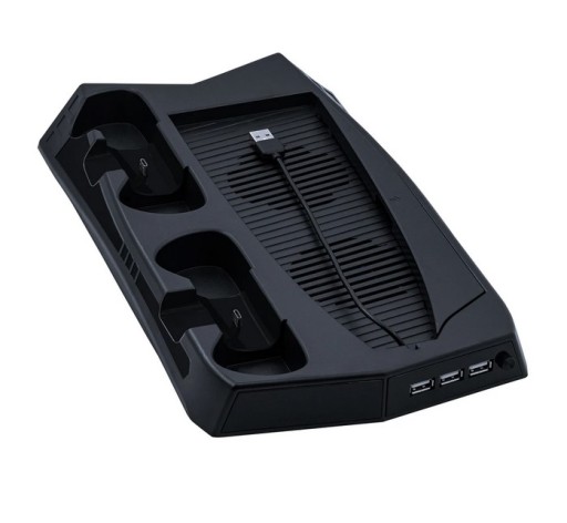 Podstawka umożliwia swobodną cyrkulację powietrza pod konsolą dzięki czemu zapobiega przegrzaniu sprzętu rozprowadzając równomiernie ciepło pod urządzeniem, wentylatory zapewniają dodatkowe chłodzenie.