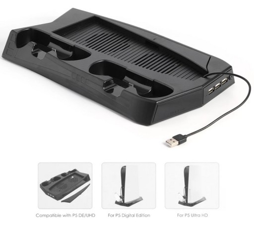 Stacja chłodząca KJH-P5-010, została specjalnie zaprojektowana dla konsoli PS5 DE / UHD ( PlayStation 5 i PlayStation 5 Digital Edition) kontrolerów bezprzewodowych DualSense.