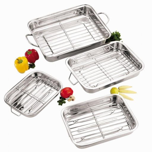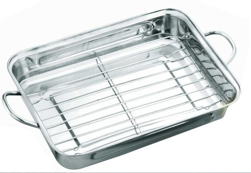 Prostokątna brytfanna z rusztem wykonana z wysokiej jakości stali nierdzewnej. Posiada wyjmowany ruszt co umożliwia pieczenie mięs, ryb czy słodkich wypieków bez ryzyka przypalenia i przywarcia do powierzchni blachy. Na ruszcie możemy również grillować mięsa, ryby lub warzywa. Po bokach formy znajdują się stalowe uchwyty ułatwiające przenoszenie.