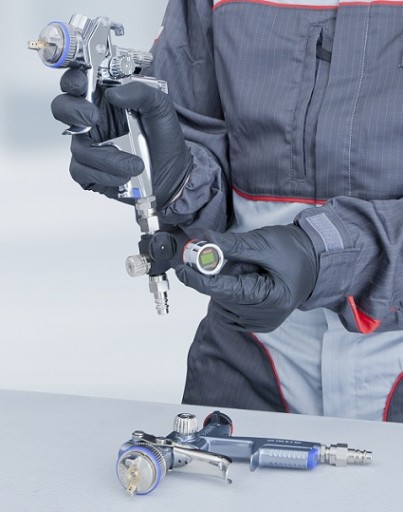 - Dzięki urządzeniu lakiernik posiada stałą kontrolę nad ciśnieniem, co ma znaczny wpływ na zapewnienie dokładności odcieni i wysoką jakość lakierowanej powierzchni.