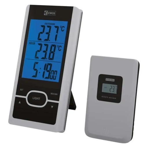 temperatura zewnętrzna: -50 °C do +70 °C, rozdzielczość 0,1 °C