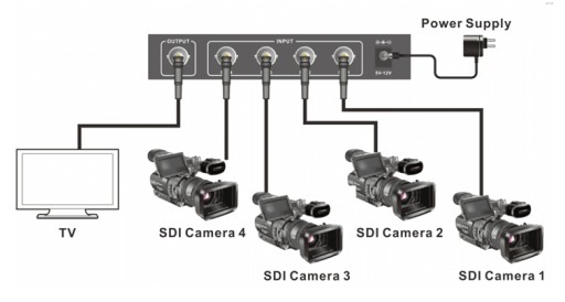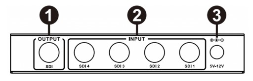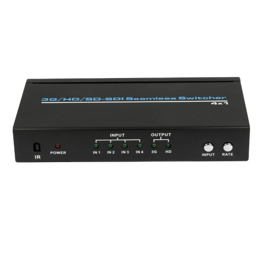 Bezszwowy przełącznik SDI 4×1 ze skalowaniem wyjścia na HD-SDI lub 3G-SDI. Wsparcie wyjściowych rozdzielczości: 1080p@60Hz (3G) i 720p@60Hz (HD).