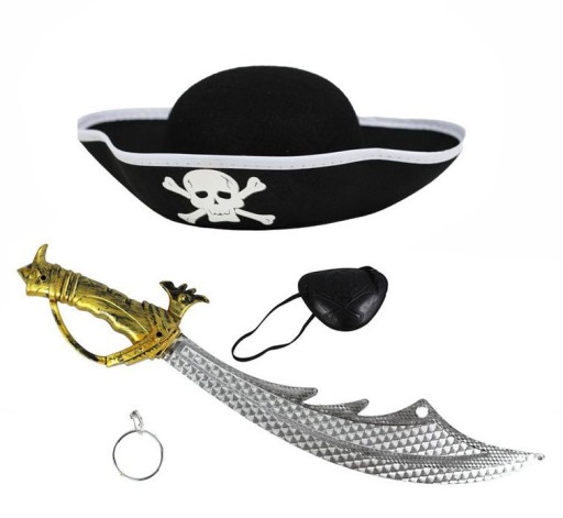 KAPELUSZ + MIECZ + OPASKA NA OKO + KOLCZYK / STRÓJ PIRACKI - PIRAT / PIRATKA