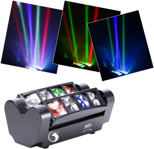 - Kompaktowa struktura, łatwa w montażu i sterowaniu, 8 diod LED dobrze nadaje się do oświetlenia sceny, dyskoteki, dla DJ-ów, na wesele, imprezę, na koncert.
