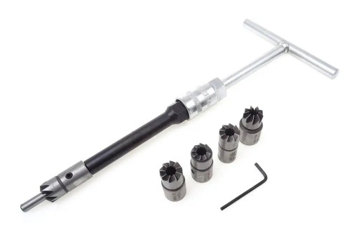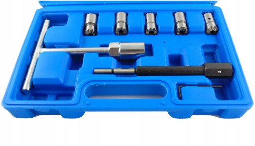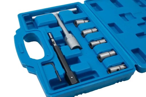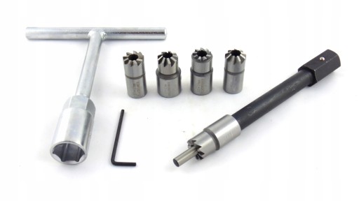 Zawartość zestawu: pokrętło , pilot centrujący oraz: Frez płaski 17x19 – zastosowanie Mercedes CRD Frez ukośny 17x21mm – zastosowanie: Fiat / Iveco Frez płaski 17x17mm – zastosowanie: BMW / PSA / RENAULT Frez płaski 15x19mm – uniwersalny