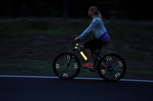Lekkie odblaskowe szprychy rowerowe. Dają silne odbicie pod wpływem światła. Nie wymagają baterii.