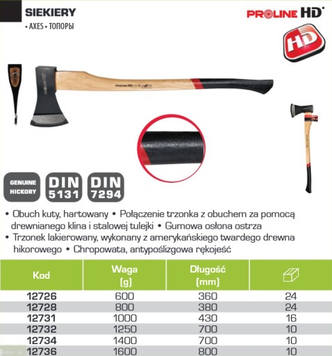 ТОПОР ДЕРЕВЯННАЯ РУЧКА 1250G HD 12732 PROLINE