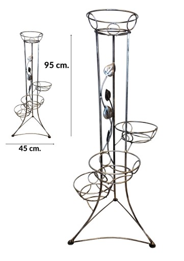 Producent: Centurion Metaloplastyka Sp. z o.o. | Wykonany z metalu | Stabilny | Nowy wzór I Elegancki design I Kolor czarny patynowany na srebro I Na 4 donice z kwiatami I Z ozdobnym listkiem I