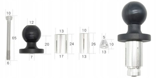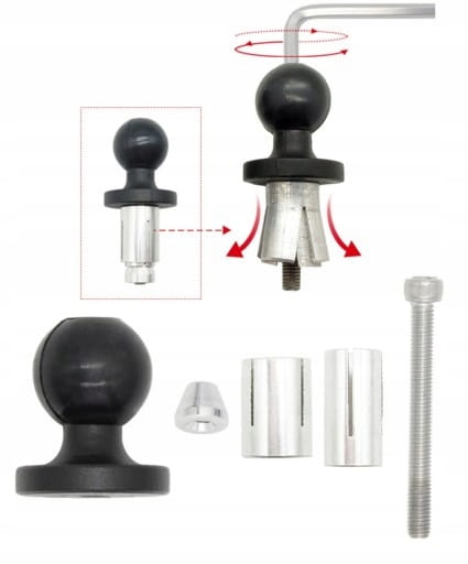Główka ma średnicę 25 mm, czyli jest kompatybilna z większością dostępnych na rynku mocowań telefonów, aparatów itp.