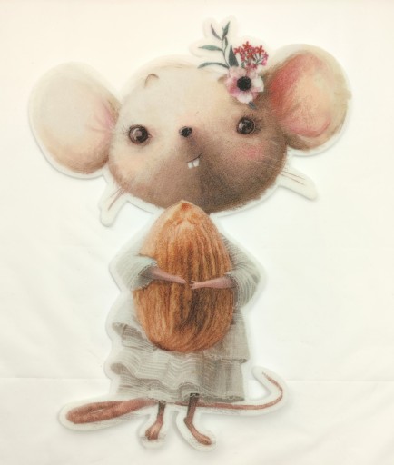 Myszka trzymająca w łapkach wielki migdał świetnie wygląda na ścianie pokoju chłopca i dziewczynki albo w kąciku zabaw. Pięknie wygląda w aranżacjach dla maluszków - noworodków i niemowląt. Do tego wzoru pasują naklejki chmurki z tej samej kolekcji Bajkowe Wzory i litery.