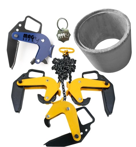 ZASTOSOWANIE: do transportu pionowego i poziomego kręgów betonowych o różnych grubościach ścianek. Można je stosować do kręgów twardych i suchych. Uchwyty są osprzętem dodatkowym na haku żurawia, suwnicy, dźwigu, hds, koparki, ładowarki lub innego urządzenia do transportu pionowo - poziomego.