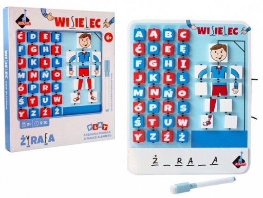 Wisielec to gra słowna, czyli nauka poprzez zabawę, dzięki której można poszerzyć wiedzę z różnych dziedzin. Jest ona zarówno świetną rozrywką, jak i sposobem na rozwój intelektualny. Ćwiczy koncentrację, umiejętność logicznego myślenia i spostrzegawczość. Jest to również najefektywniejsza metoda przyswajania ortografii. Zabawka wykonana z drewna.
