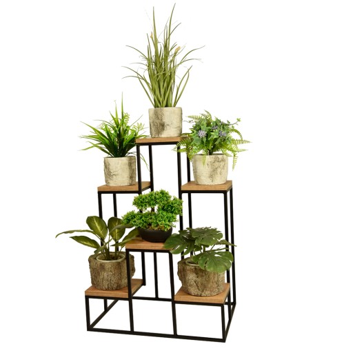 Najnowszy produkt naszej firmy, metalowy kwietnik z półkami dąb craft złoty idealnie wpasuje się w Twoje wnętrze. Stabilny, czarny, w całości spawany kwietnik z powodzeniem będzie również znakomita ozdobą. Jego blaty w rozmiarze 18x18 cm są łatwe w utrzymaniu czystości, a kompaktowa bryła( szerokość 54/36 cm, wysokość 77 cm.) sprawia, że mimo swojej małej powierzchni użytkowej pomieści aż 6 kwiatów.