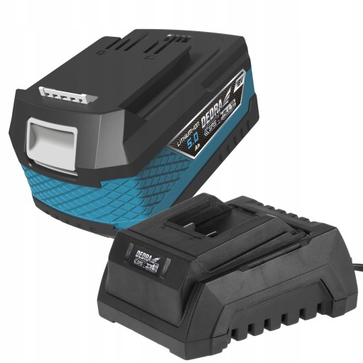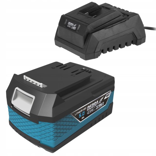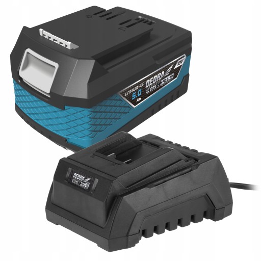 Wysokiej pojemności akumulator litowo-jonowy, zawarty w kompaktowej obudowie o tych samych wymiarach co akumulator 4.0Ah DED7034. Akumulator 5.0 Ah pozwala na wydłużenie czasu pracy zasilanych urządzeń.