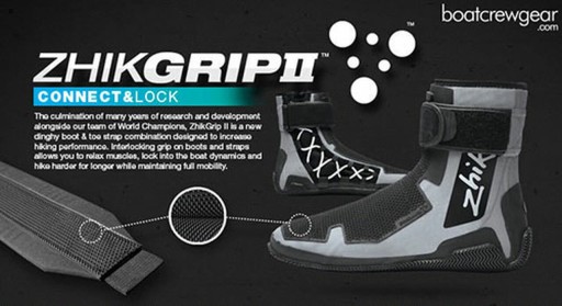 Opatentowany wzór kołków i blokad łączących łódź i żeglarza, Zhikgrip™ II jest wykonany z bardzo trwałej, unikalnej mieszanki gumowej. Zwężające się kołki blokują się pod dowolnym kątem lub w pozycji, zapewniając ekstremalną przyczepność, jednocześnie umożliwiając łatwy ruch i regulację buta pod paskiem.