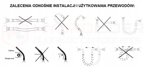 Przewód hydrauliczny jest zakuty, przedmuchany (oczyszczony ciśnieniem ze sprężarki), gotowy do podłączenia i pracy w układzie. W skład gotowego przewodu wchodzi: oryginalny, zbrojony i elastyczny wąż marki Hydrolider oraz zakucia polskiego producenta. Wszystkie elementy są odporne na warunki atmosferyczne, pękanie i korozję.