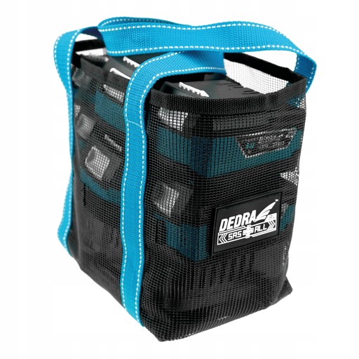 Torba/etui przeznaczona do transportu akumulatorów i ładowarki z systemu SAS+ALL. Wykonana z lekkiej siateczki oraz pasów pełniących funkcję uchwytów. Niewielka waga oraz użyty materiał pozwala na bezproblemowe przechowywanie torby w każdym miejscu. Pokrowiec pozwala transportować przykładowo jedną ładowarkę oraz do sześciu akumulatorów DED7034/DED7035.