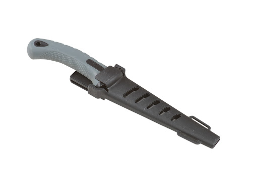 Do piły dołączono kaburę zabezpieczającą ostrze z możliwością montażu do pasa.