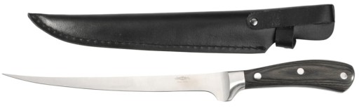 Najwyższej klasy, wykonany z Japońskiej stali nierdzewnej AUS8 nóż do filetowania ryb. Niewiarygodnie lekki, o specjalnie wyprofilowanym, odpowiednio miękkim ostrzu idealnie dopasowuje się do kręgosłupa ryby, dzięki czemu mięso jest odcinane przy samej kości.